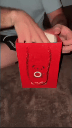 Al descubrir el collar oculto bajo la rosa, la sorpresa es total y el momento se vuelve único.